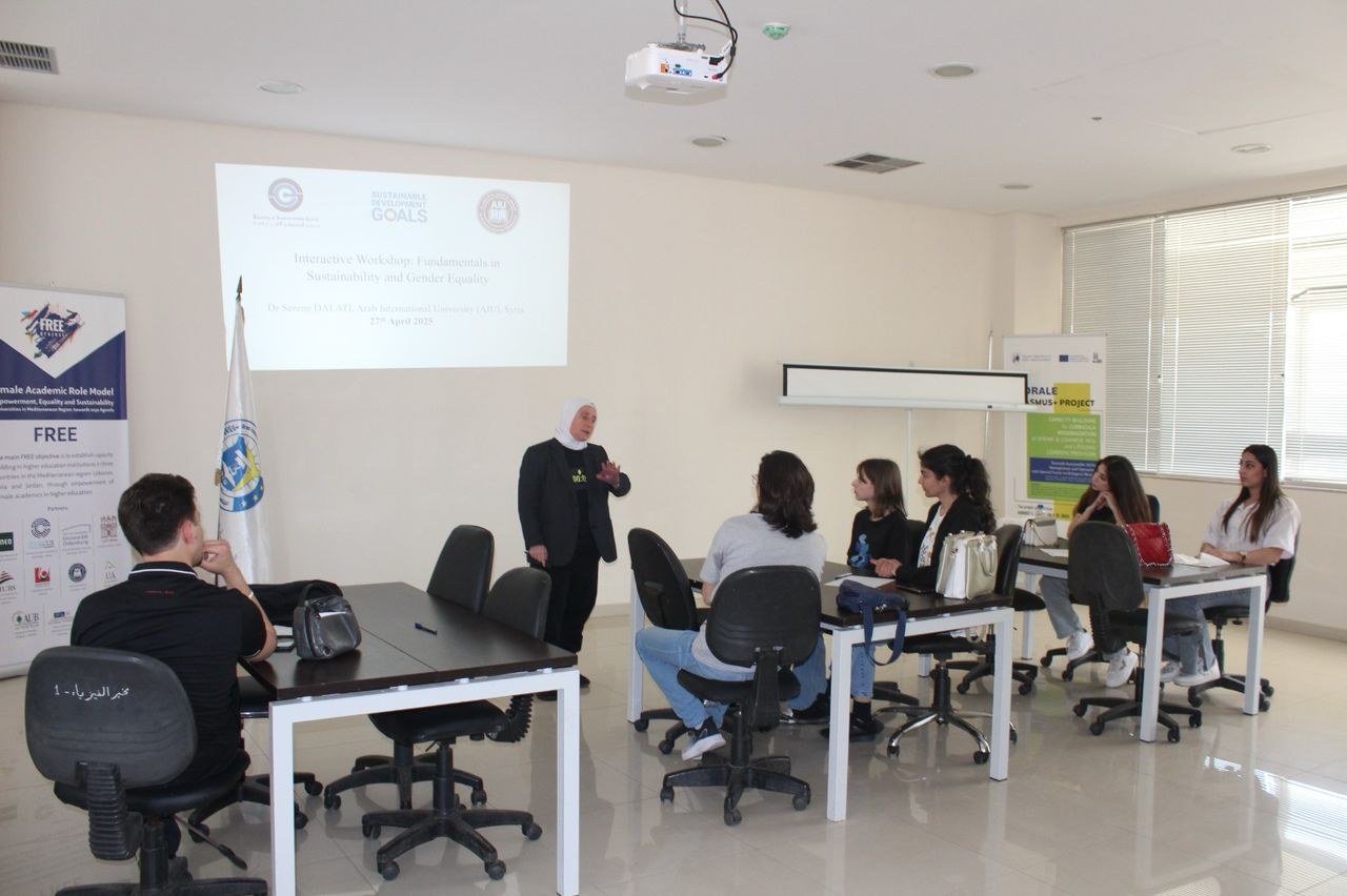Within the activities and activities of the Center for Equality and Sustainability at the Arab International University, interactive workshops were implemented at on the 27th and the 29th of April 2025. Dr. Serene Dalati held an interactive workshop on the 27th of April 2025 entitled “Fundamentals of Sustainability and Gender Equality.” Consequently, Mr. Firas Ramo performed an interactive workshop on the 29th of April 2025 entitled “Fundamentals in Sustainable Marketing: Integrating Sustainable Marketing Strategies in Business Sectors”. These workshops were attended by AIU students in a unique, interactive academic environment.